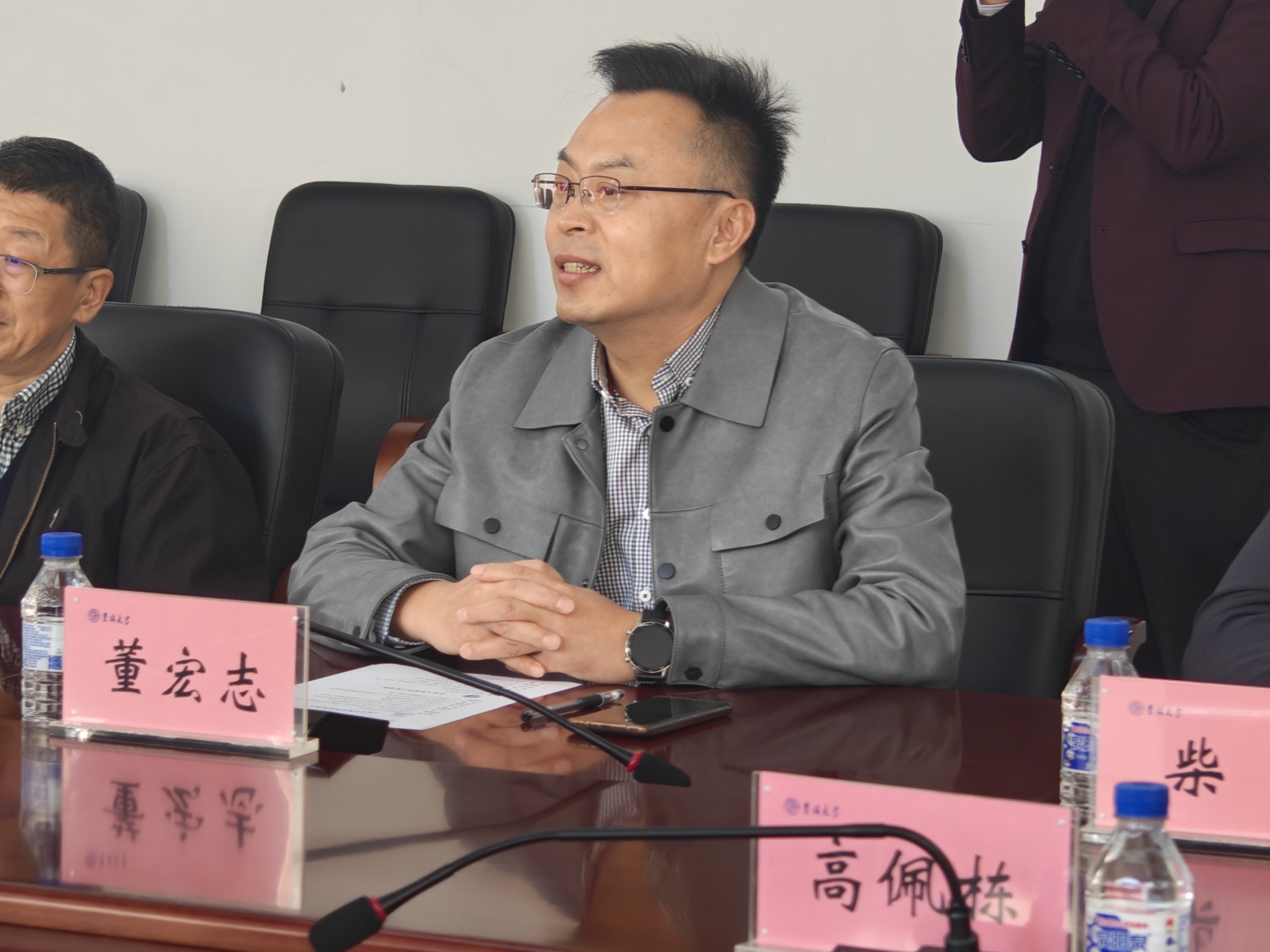 董宏志书记以学校“红旗欧洲杯”为例,结合欧洲杯实际情况在人才联合培养、岗位提前锚定、提升招聘效率与精准度等方面进行了交流。孙晓颖院长以“吉甲大师双创基地”为例,进一步阐述了欧洲杯的人才培养理念:将基本的培养方案和综合素质拓展有效结合,以科创项目为基础培育人才、推动就业,全面提升学生的综合能力。