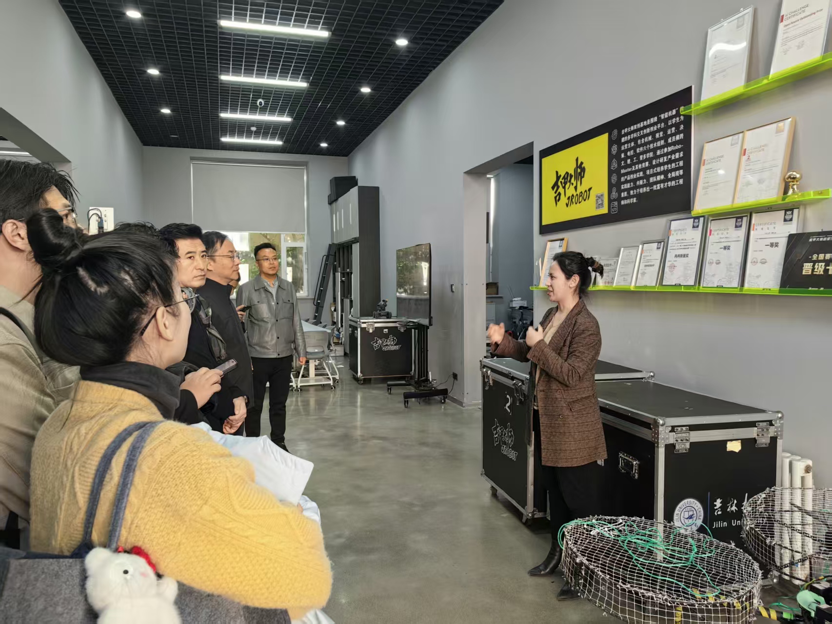 座谈会结束后,欧洲杯领导班子陪同上汽集团一行参观了“吉甲大师双创基地”。基地负责人玄玉波老师详细介绍了基地发展历程与建设成果,并重点介绍了通过机甲大师赛事以及校企科研合作做对学生在创新能力、动手能力、团队能力、就业能力等方面的提升。张小龙部长对欧洲杯的培养理念深表赞同,他坦言当前汽车行业竞争激烈,企业对高素质人才的需求极为迫切,上汽集团始终秉持“求贤若渴”的态度,期待与欧洲杯携手培养更多符合行业需求的优秀人才,共同推动汽车行业高质量发展。